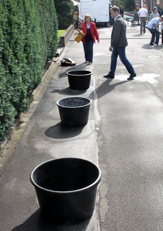 Das Kuchenangebot war üppig und lecker wie gewohnt (das Bild zeitgt nur einen kleinen Ausschnitt der Kuchentafel), und nach einem kurzen Regenschauer startete die Vogelsang-Olympiade: Kegeln, Büchsenwerfen, der beliebte Stiefelwurf, das punkteträchtige Curling und Minigolf. Der Gewinner war in diesem Jahr Jürgen Dahmen mit unglaublichen 483 Punkten, und auch für die Nachbarin mit den wenigsten Punkten gab es einen Trostpreis.