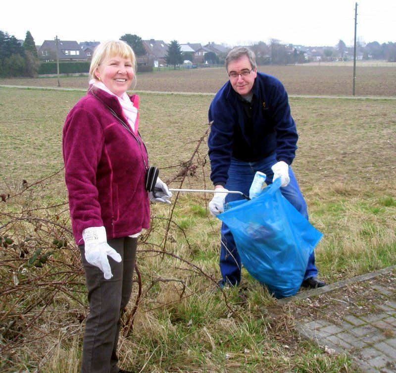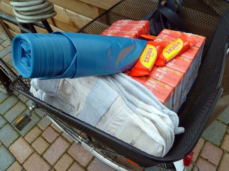 Heute bot sich im Rahmen der Aktion ‚Saubere Stadt‘ eine gute Gelegenheit diesen Zustand zumindest für ein paar Wochen zu verbessern. Am Bauhof gabs Handschuhe (von der KWA), Tüten und etwas Stärkung (sponsored by Aldi).