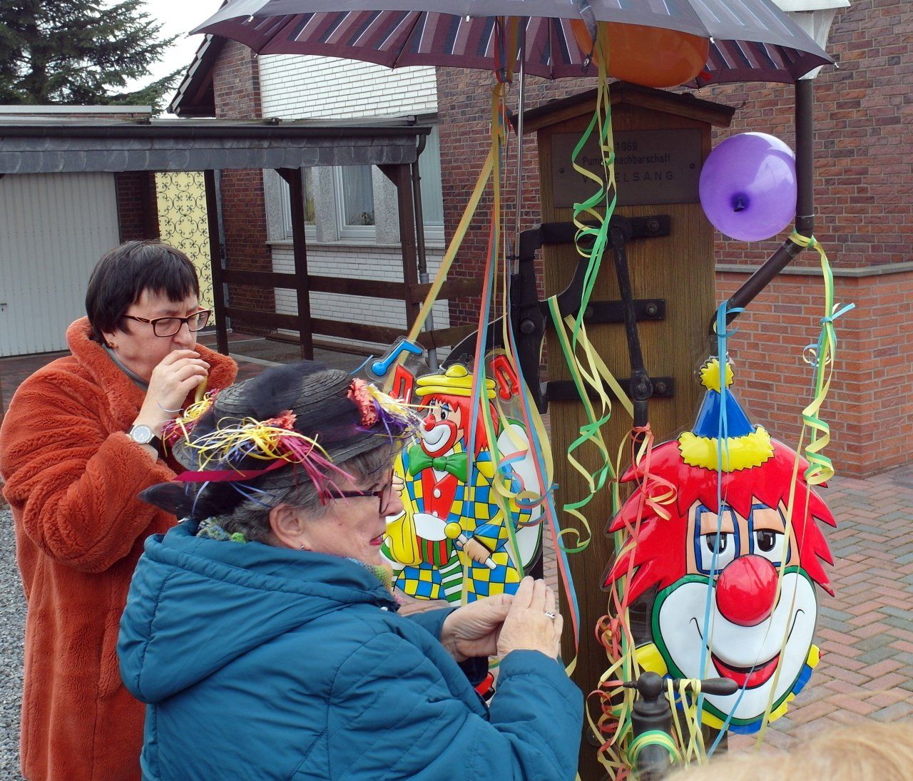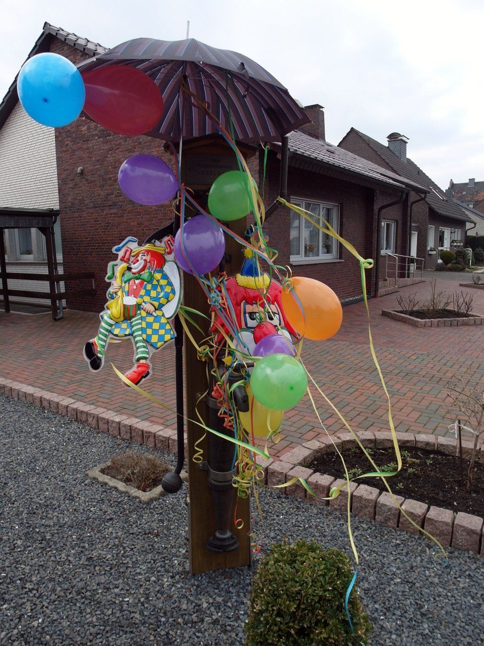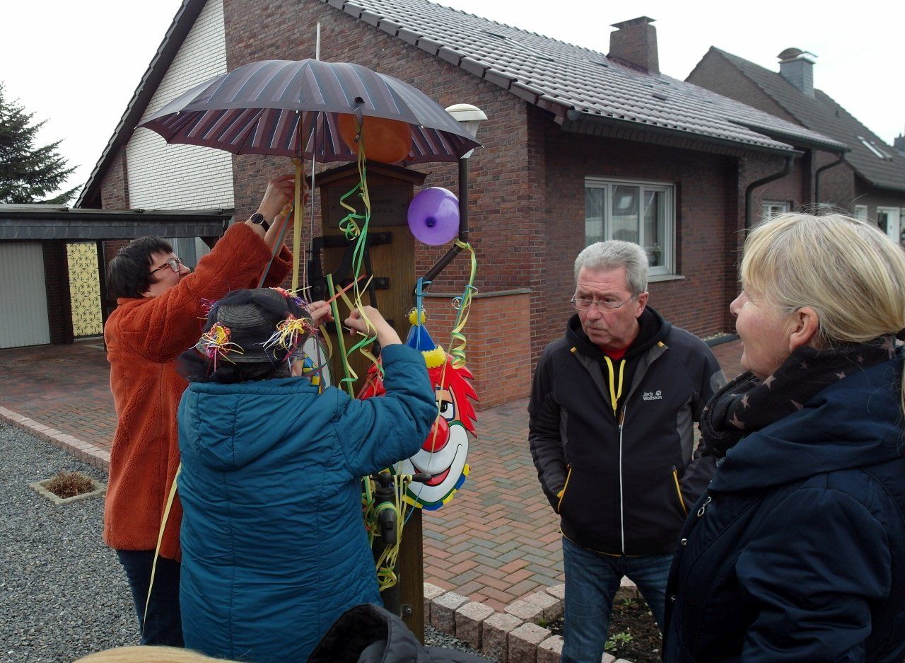 Die jecke Zeit hat begonnen, und bereits seit letzten Samstag sieht man das unserer Pumpe auch an! Um drei trafen sich einige Nachbarn um die Pumpe karnevalistisch zu schmücken. Dazu gab es ein kleines Likörchen und etwas ‚Vogelfutter‘. Wetter und Laune waren gut wie man den Fotos ansieht.