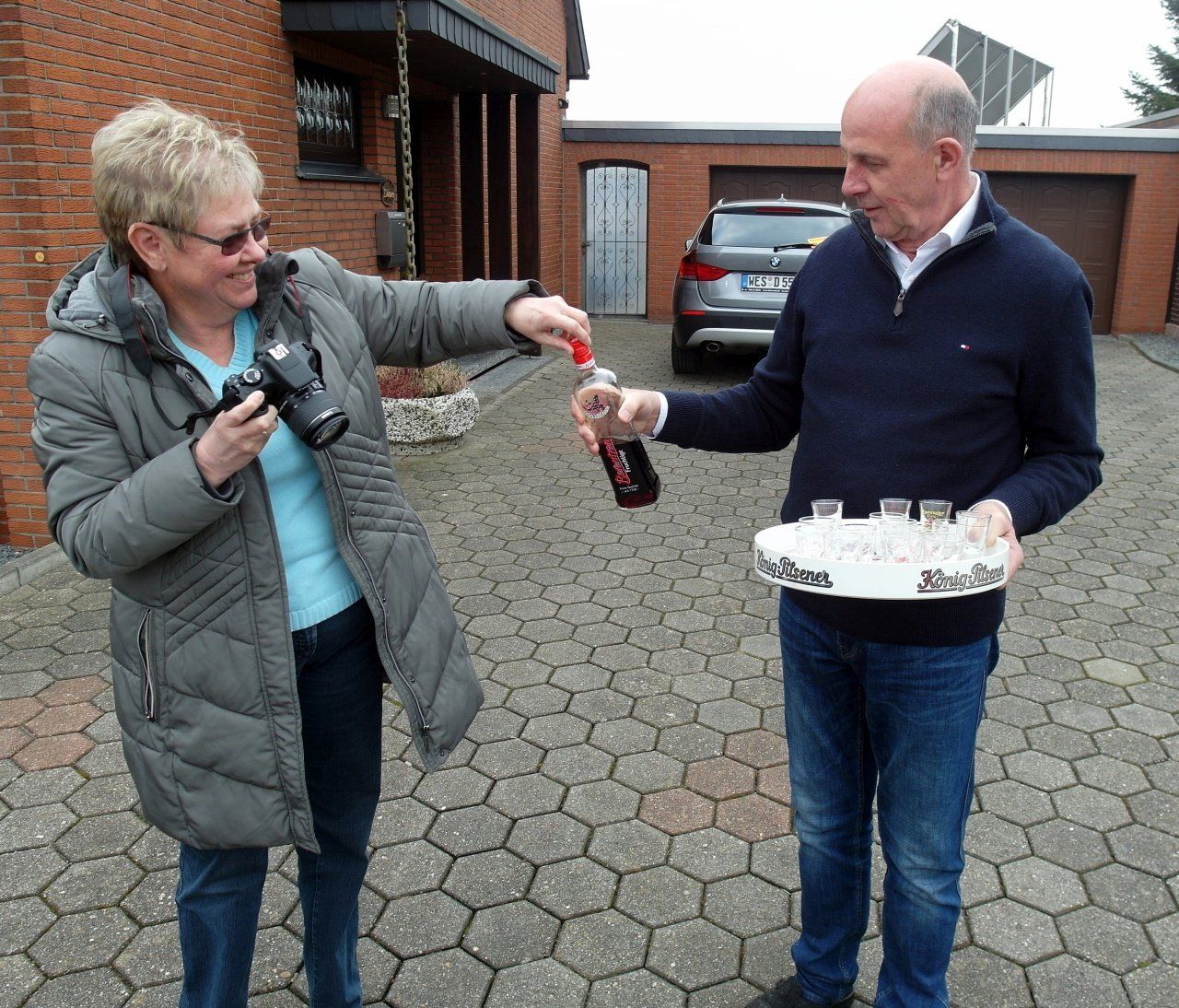 Und auch der Jubilar des Tages – auf dessen Grundstück wir uns versammelt hatten – liess sich blicken und schmiss eine weitere Runde: Friedhelm Dahmen wurde am letzten Samstag 70.